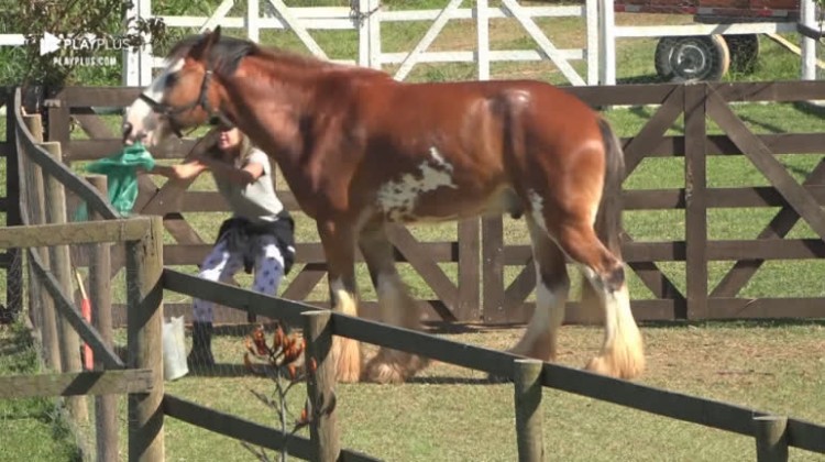 Hari terminou de cuidar das lhamas quando foi surpreendida por Lyon. Para conseguir fechar a porteira, a peoa colocou os materiais no chão e o cavalo