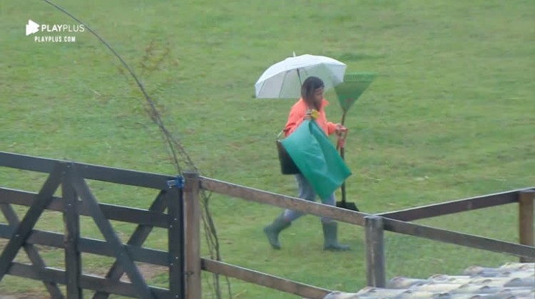 Hari fez as tarefas com guarda-chuva e cumpriu com as obrigações sem se importar com o mau tempo. Quer saber o que acontece o tempo todo em A Fazenda? Acesse PlayPlus.com e acompanhe tudo 24 horas ou assista à íntegra dos programas.