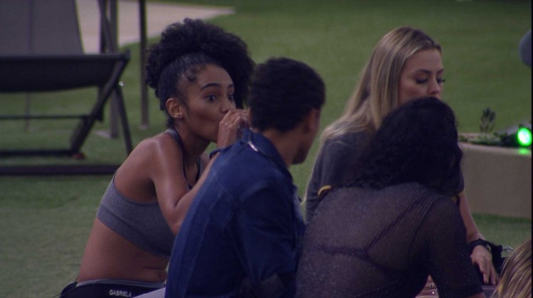 Na área externa, os brothers brincam de "Eu Nunca" - brincadeira em que a pessoa bebe alguma coisa quando já fez algo.