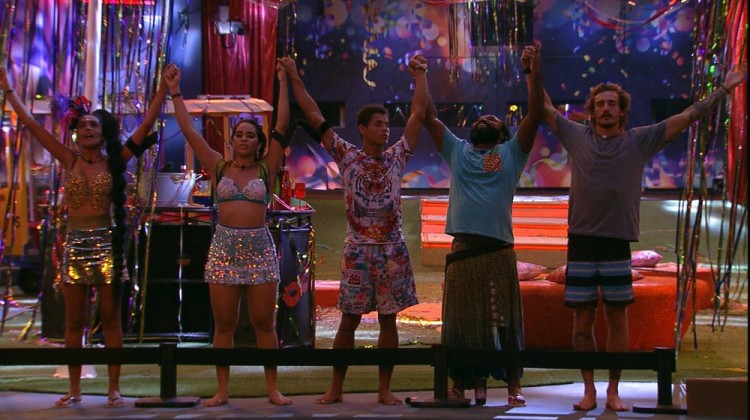 Termina a Festa BBBloco, que contou com apresentação da cantora Preta Gil com o Baile da Preta. Gabriela, Elana, Danrley, Rodrigo e Alan, que ainda estão na pista de dança lamentam. Eles se unem perto da piscina e dão as mãos.