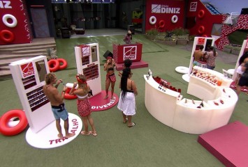 Com figurino especial, os brothers se reúnem na sala da casa e escutam atentamente Elana comunicar ...