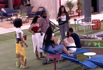 Conversando na área externa, Paula sonha com a liderança da semana e afirma: "Eu tenho que ganhar ...